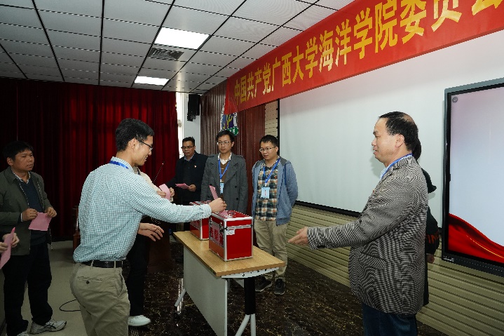 本次大会应到有选举权的正式党员67名,因病、因事请假3名,实到会正式党员64名,符合规定人数。大会先以举手表决的方式通过了《大会选举办法》和总监票人、监票人名单,然后酝酿讨论并通过了公司党委委员、纪委委员候选人名单,最后以无记名投票方式差额选举产生了新一届公司党委委员和纪委委员。党委委员分别是朱迅成、林玉华(女,瑶族)、姜伟、梁甲元、谭运阳;纪委委员分别是王瑞、朱迅成、周剑。