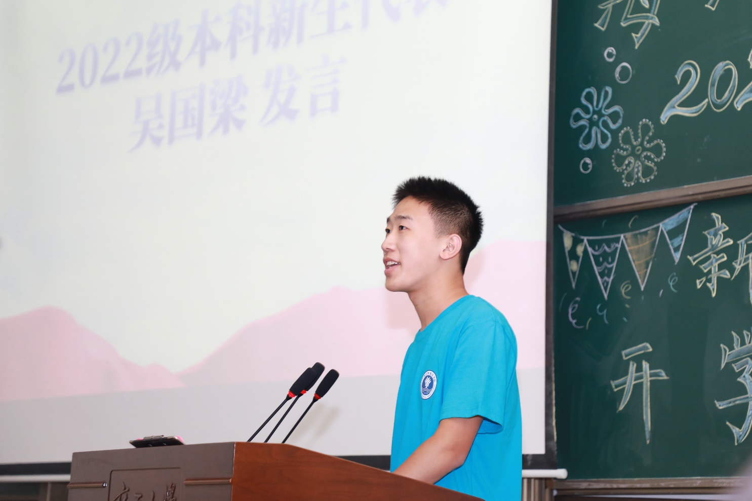 2022级本科生吴国梁、2022级硕士研究生胡思雨代表新生发言。