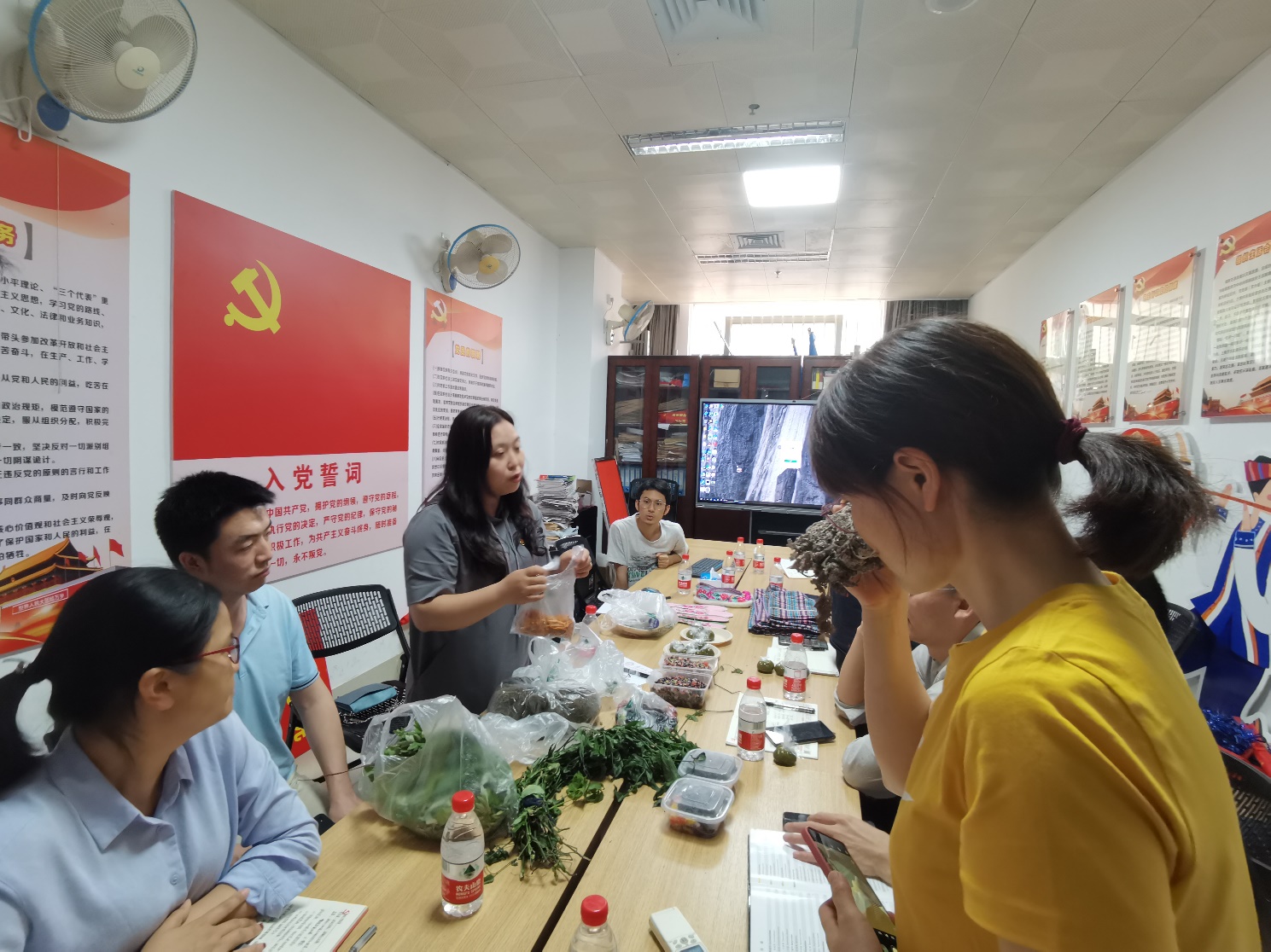 林玉华老师向党员教师分享五色糯米饭和艾叶糍粑