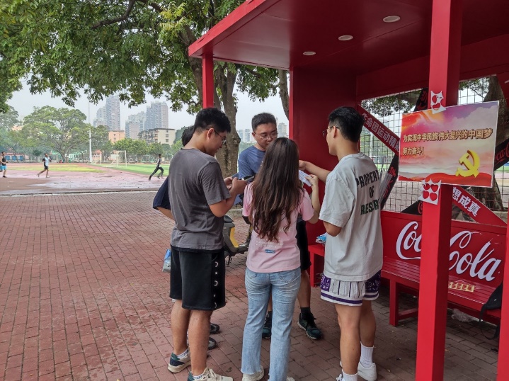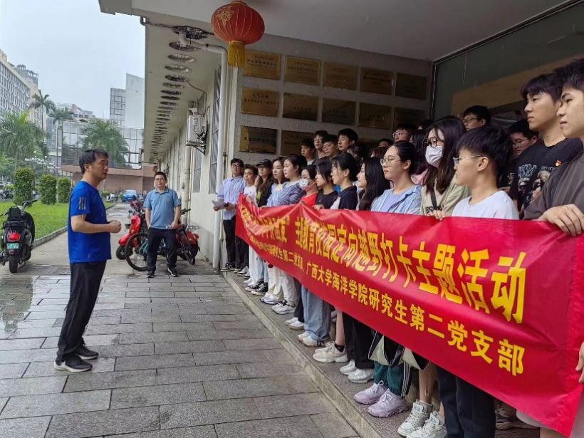 公司党委副书记朱迅成在主题党日活动开展前强调,在全党开展学习贯彻习近平新时代中国特色社会主义思想主题教育之际,希望两个支部的党员通过拓展学习形式开展联学共建,真正把习近平新时代中国特色社会主义思想入脑入心不断提升同学们的理论素养,并且将理论学习成效应用于指导实践,开展专业知识的交叉融合研究,为海洋强国战略以及中国式现代化建设贡献每个党员的青春力量。本次活动的作答内容主要是习近平新时代中国特色社会主义思想及党的二十大精神,“知识问答+定向越野”的形式将知识与运动相结合,上演了一场“脑力+体力”的碰撞,通过趣味性的答题打卡活动来加深党员对理论知识的学习和理解。两个支部的成员组成7个小组,按照不同的地图指示方向在相应的检查点进行打卡集贴纸,根据打卡完成的先后顺序进行小组排名。