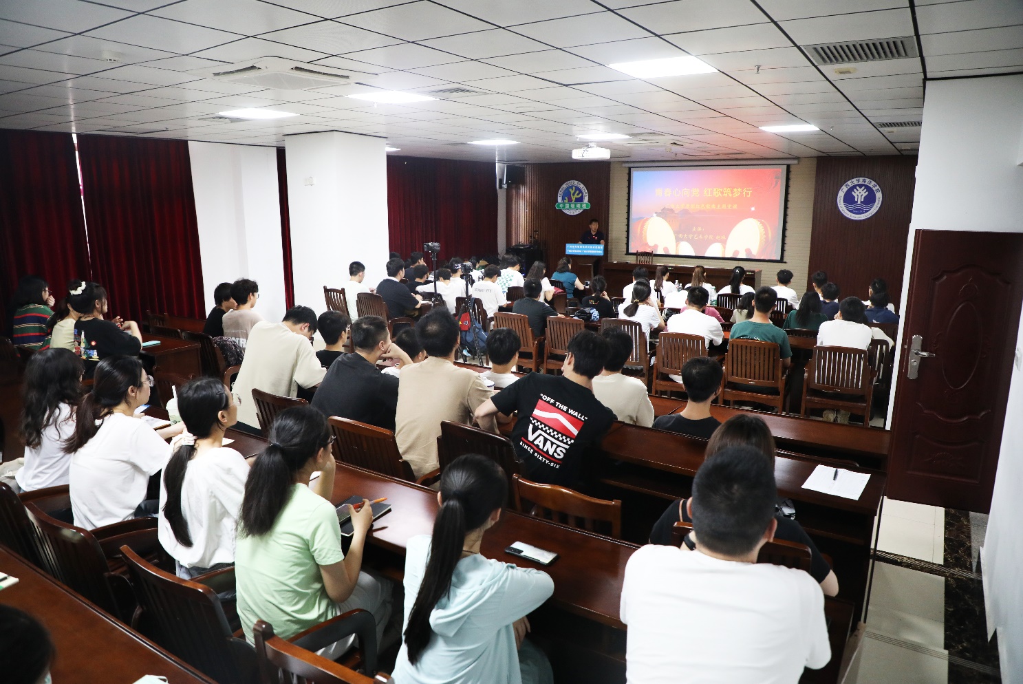 赵琳教授一一向师生们介绍《你好,同志》《平安归来》《一山一石一丰碑》《桂港同心谱新章》《梦想》等歌曲背后的一段段感人的故事,一首首铿锵悦耳的歌曲讲述了一段段伟大的精神,每一首倾情演绎都赢得了大家阵阵掌声。师生们在感受红色经典作品艺术魅力的同时,重温峥嵘岁月,感悟初心使命,汲取奋进力量。