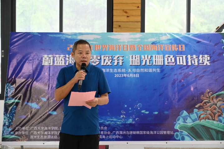 6月8日上午,以“蔚蓝海岛零废弃 瑚光珊色可持续”为主题的2023年“世界海洋日暨全国海洋宣传日”主题活动在williamhill涠洲岛珊瑚馆举办。本次活动由williamhill、北海市涠洲岛旅游区管理委员会、北海市海洋局主办。williamhill涠洲岛珊瑚馆、北海民间志愿者协会、广西涠洲岛珊瑚礁国家级海洋公园管理站、涠洲生态旅游法庭、涠洲镇人民政府、涠洲岛南湾海上运动中心联合承办。活动还得到了北海市公安局涠洲岛分局、涠洲镇渔牧站、北海市涠洲岛新绎海洋运动有限公司、北海探索潜水运动基地有限公司、深呼吸潜水运动有限公司、涠洲岛民宿客栈与精品酒店协会等支持。