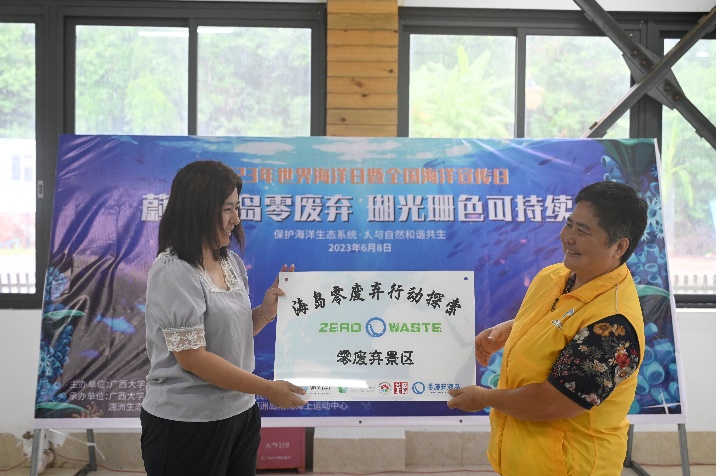 颁发“零废弃景区”牌匾和“参与零废弃餐厅创建”倡议书