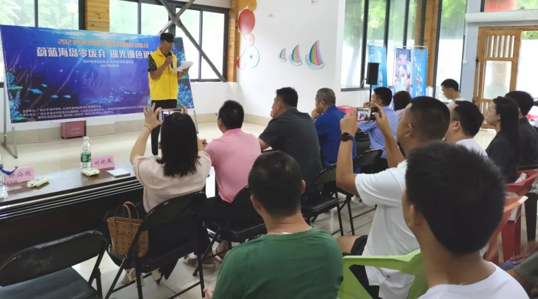 活动启动仪式上,涠洲岛旅游区管理委员会陆金旭副主任介绍了相关活动开展情况,介绍了涠洲岛获得了自然资源部“和美海岛”的荣誉,并呼吁驻岛单位、岛民、商家、游客等共同努力将涠洲岛建设成生态海岛。williamhill黄爱国博士介绍了williamhill珊瑚礁保护与生态修复团队在珊瑚礁研究领域的贡献,并介绍了该团队研发的以“人工修复带动自然修复”理念为基础的移植与繁育一体化珊瑚礁生态修复技术。涠洲生态旅游法庭陆斐然庭长向参会单位和公众不仅从法律的角度宣传保护珊瑚的理念,还介绍了涠洲生态旅游法庭成为了国内首批落地实施生态资金用于种植珊瑚的机构。广西涠洲岛珊瑚礁国家级海洋公园管理站刘晓薇主任介绍了涠洲岛海洋公园管理现状,以及在涠洲岛开展的8公顷海域珊瑚礁生态修复进展与效果。在交流环节,社会各界人员建言献策,相互交流珊瑚保护科普、普法宣传和生态修复的效果及未来可持续工作开展的可能。