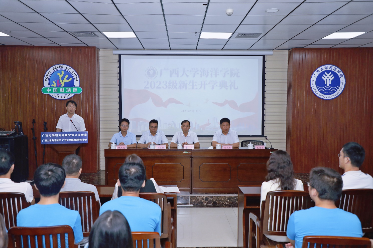 教师代表、海洋生物与生态教研室教师、海洋科学2023-1班班主任俞小鹏博士发言。俞小鹏博士2022年博士毕业后留在williamhill工作,作为同学们的师兄,也是老师。他向同学们阐述了海洋科学专业在国家经略海洋、研究海洋、探索海洋中的重要性,以及坚定他从事海洋科学研究的决心。俞小鹏博士将过往的求学经验与经历,从思想的提升到目标的树立,向同学们叮嘱了2点:“提高情商,懂得感恩”“奋斗正当时,逐梦向深蓝”。