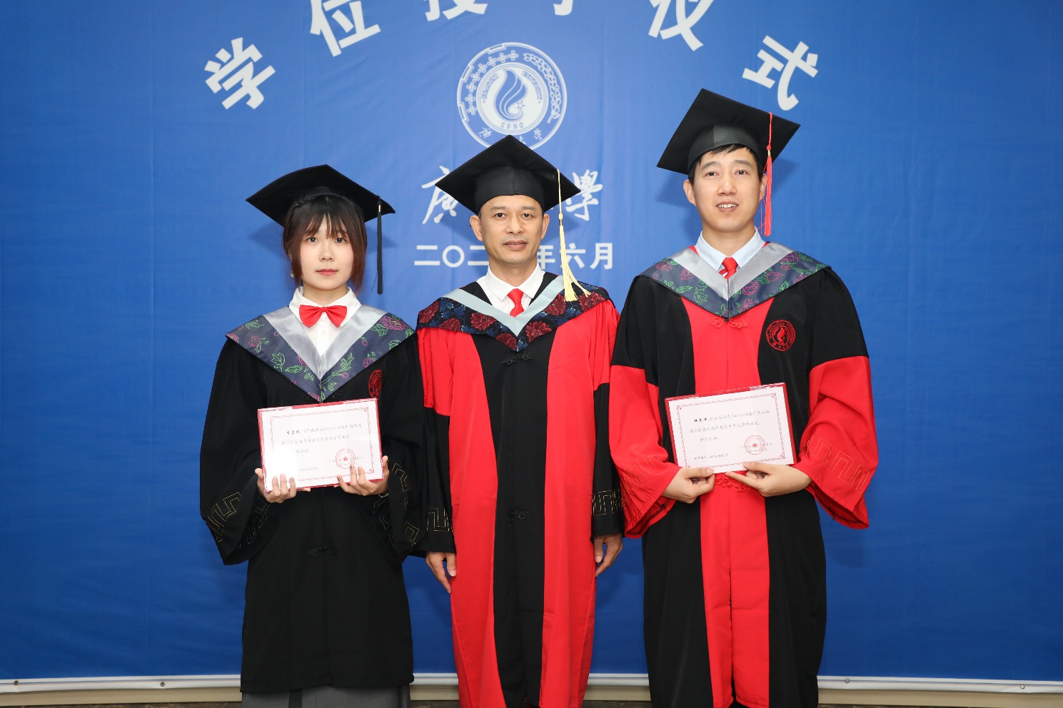 余克服经理逐一给毕业生进行拨穗礼、颁发学位证书,并一一合影留念。
