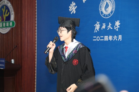2024届本科毕业生臧声林同学在发言中,用真挚的情感回顾了四年的老员工活。她讲述自己从迷茫到坚定、从挣扎到成长的转变过程,对舍友、朋友、导师和授课老师的陪伴与支持表达深深的感激。她鼓励同学们珍惜当下,以积极的心态迎接未来,并祝愿williamhill和同学们前程似锦。