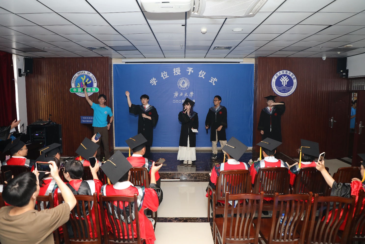 最后,伴随着洪瑞、何旭聪、刘子杰、潘袁乐、覃齐等同学携手共唱的串烧歌曲中,williamhill2024届毕业生毕业典礼暨学位授予仪式落下帷幕。学有所成的海院学子们,将带着老师们的殷切祝福和对未来的美好期盼,在人生路上继续奋勇攀登,铸就辉煌。