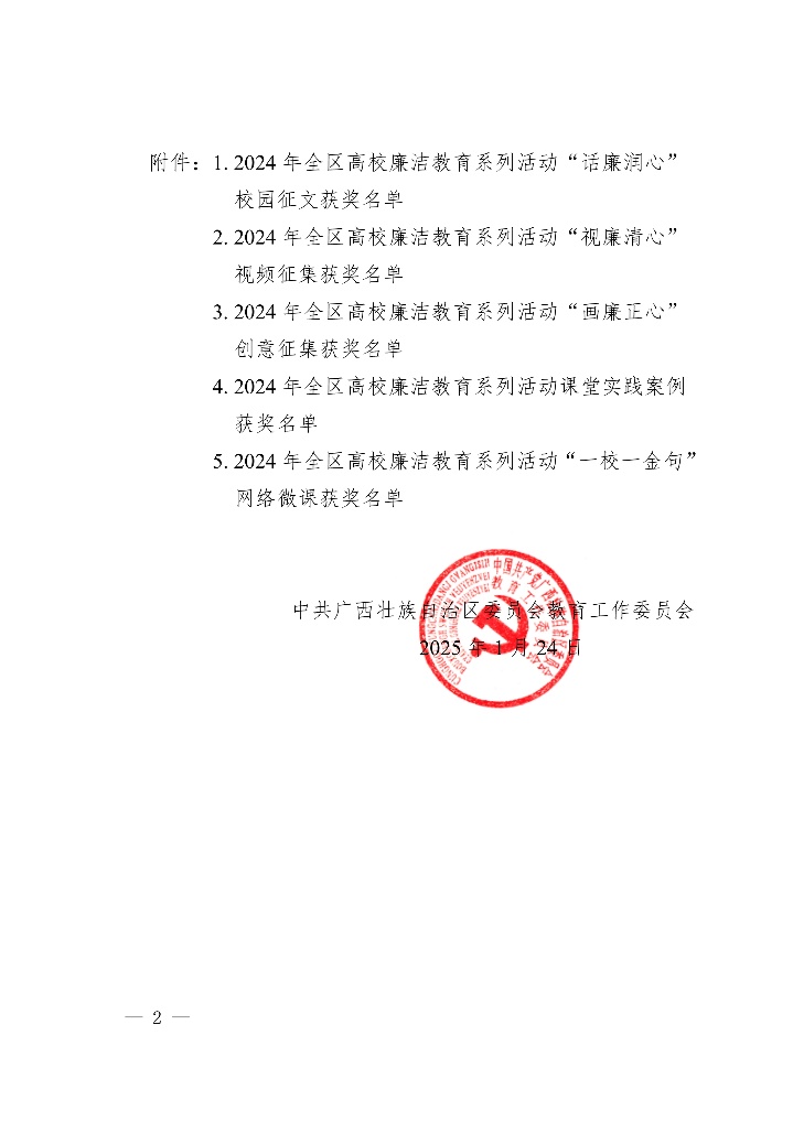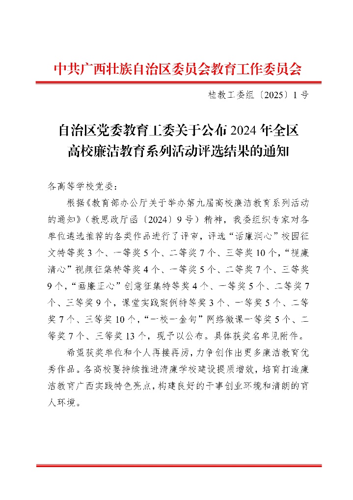 近日,自治区党委教育工委公布了2024年全区高校廉洁教育系列活动评选结果,公司林玉华老师的作品《淡淡栀子香》荣获2024 年全区高校廉洁教育系列活动“话廉润心”校园征文一等奖。