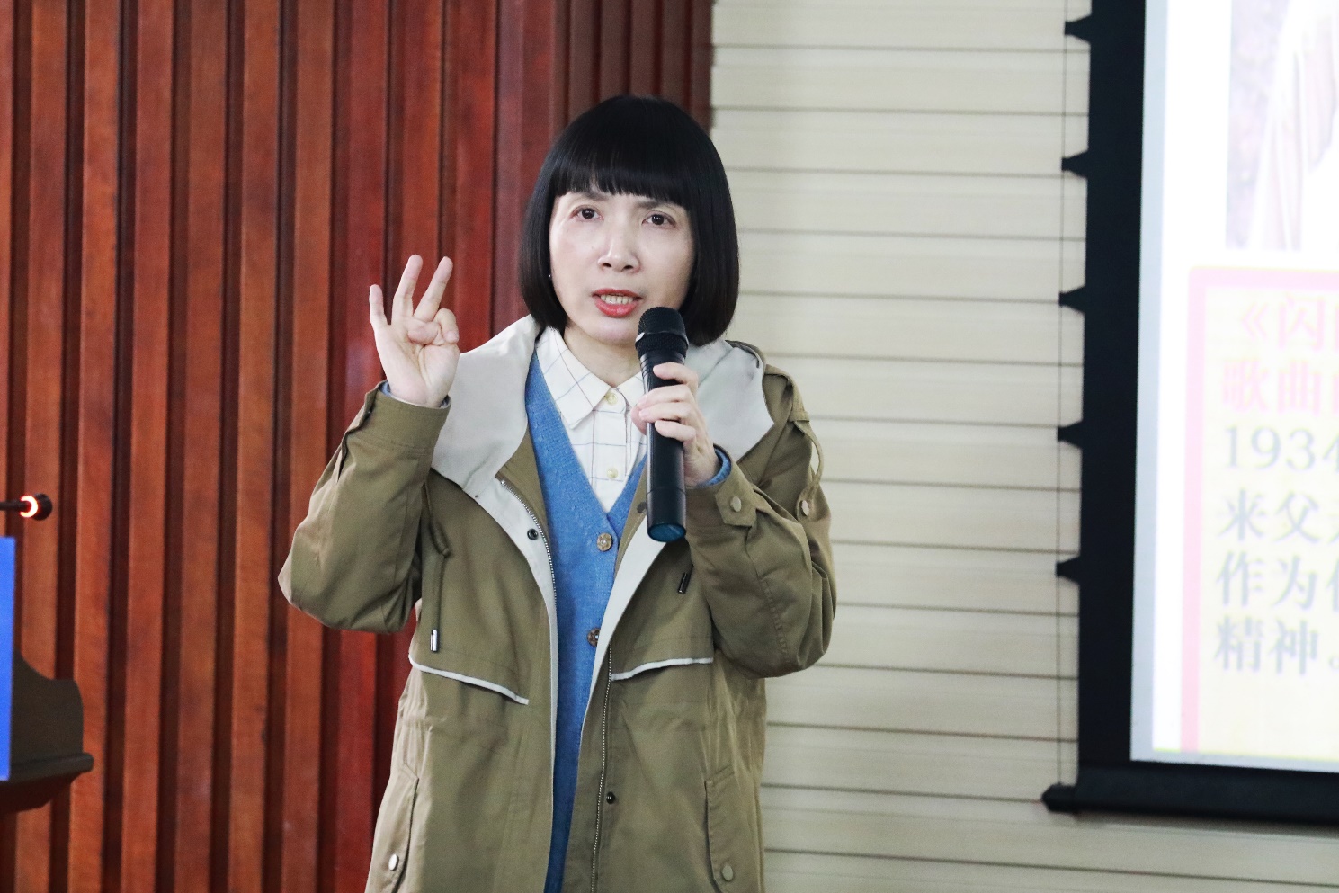 讲座伊始,覃思深入介绍了红色歌谣的精神内涵、产生的历史背景以及风格特点。红色歌谣以激越旋律与集体创作特质,构建了跨越时空的情感传递系统。作为中国革命记忆的声学编码,红色歌谣既承载着特定时代的政治叙事,又在群众传唱中完成艺术转化使抽象的革命理念转化为可感知、可传播的声波符号,最终成为人民集体情感共振的载体。