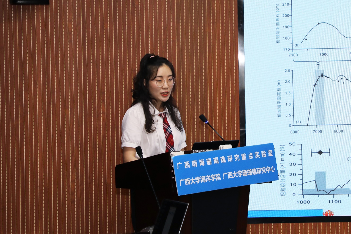 龙雅婷同学(导师:余克服教授)主要对涠洲岛北部珊瑚礁的钻孔岩心材料进行了相关分析,其论文题目是《涠洲岛全新世珊瑚礁的发育过程及其作为南海珊瑚避难所的潜力分析》。龙雅婷本科毕业于上海海洋大学海洋科学公司,于2018年9月到本校就读研究生,主要研究方向为海洋生物地质与环境。读研期间,以第一作者身份在地学核心期刊《海洋地质与第四纪地质》上发表论文:《涠洲岛珊瑚礁的发育过程及其与气候的对应关系》。