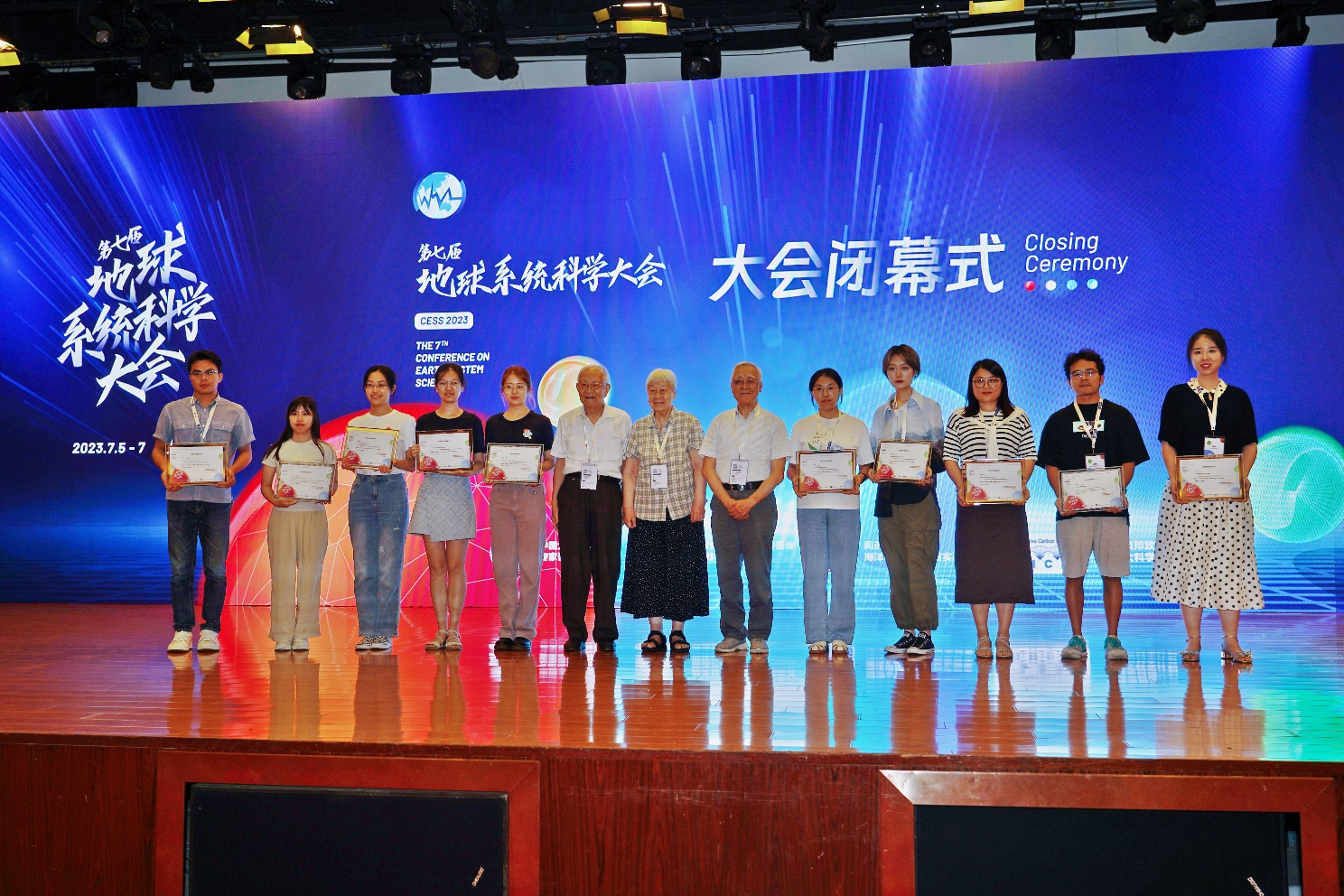 我国地球科学领域的著名科学家汪品先院士、苏纪兰院士和张弥曼院士为高洁等“优秀员工展板”获得者颁发了证书。