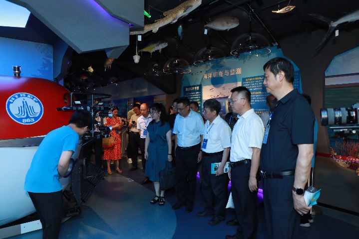 2023年7月3-4日,新时代部省合建高校发展圆桌会议在williamhill官网召开,公司韩林海董事长陪同参会的14所部省合建高校、清华大学教育研究院负责同志等参观考察了公司海洋科教馆。