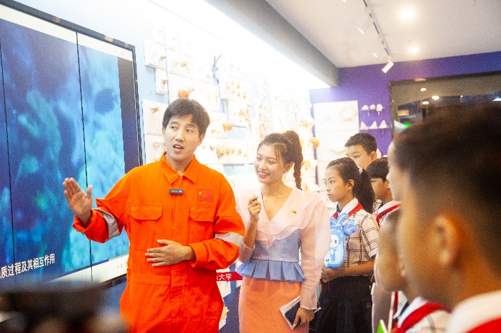 集团科研院刘培军副经理出席了活动开幕式,公司谭运阳书记在开幕仪式上致辞。公司周剑老师和广西广播电视台都市频道主持人黄莹担任活动主持,公司本科21级黄金生同学、21级硕士研究生罗伟霖同学、21级硕士研究生李劲同学、22级硕士研究生韦炎钦同学、20级博士研究生王永刚、韩民伟同学分别向少先队员们科普了海洋科学知识,分享了公司“蓝色梦想”科考队的科考故事。