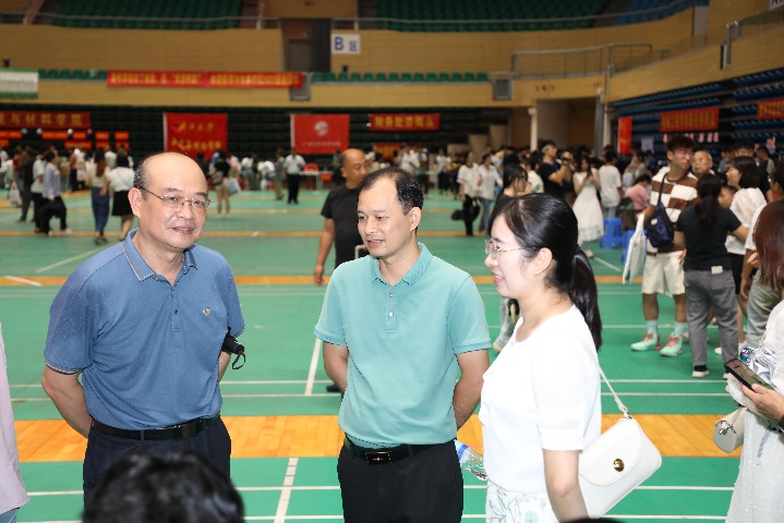 秦华东书记指导迎新工作并与员工家长亲切交谈
