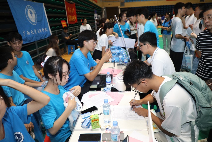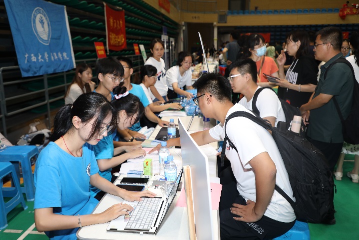 9月9日上午迎新系统刚开放,新生们陆续迈进公司,在一对一接待服务的志愿者以及班助的协助下完成材料验证、办理校园卡等报到手续。公司党委书记秦华东、党委副书记朱迅成到场指导迎新工作、与新生家长等进行交谈,并亲切慰问新生和迎新工作师生及志愿者。团委学工、研究生办公室和行政办等相关负责老师也到场协助迎新工作的开展。