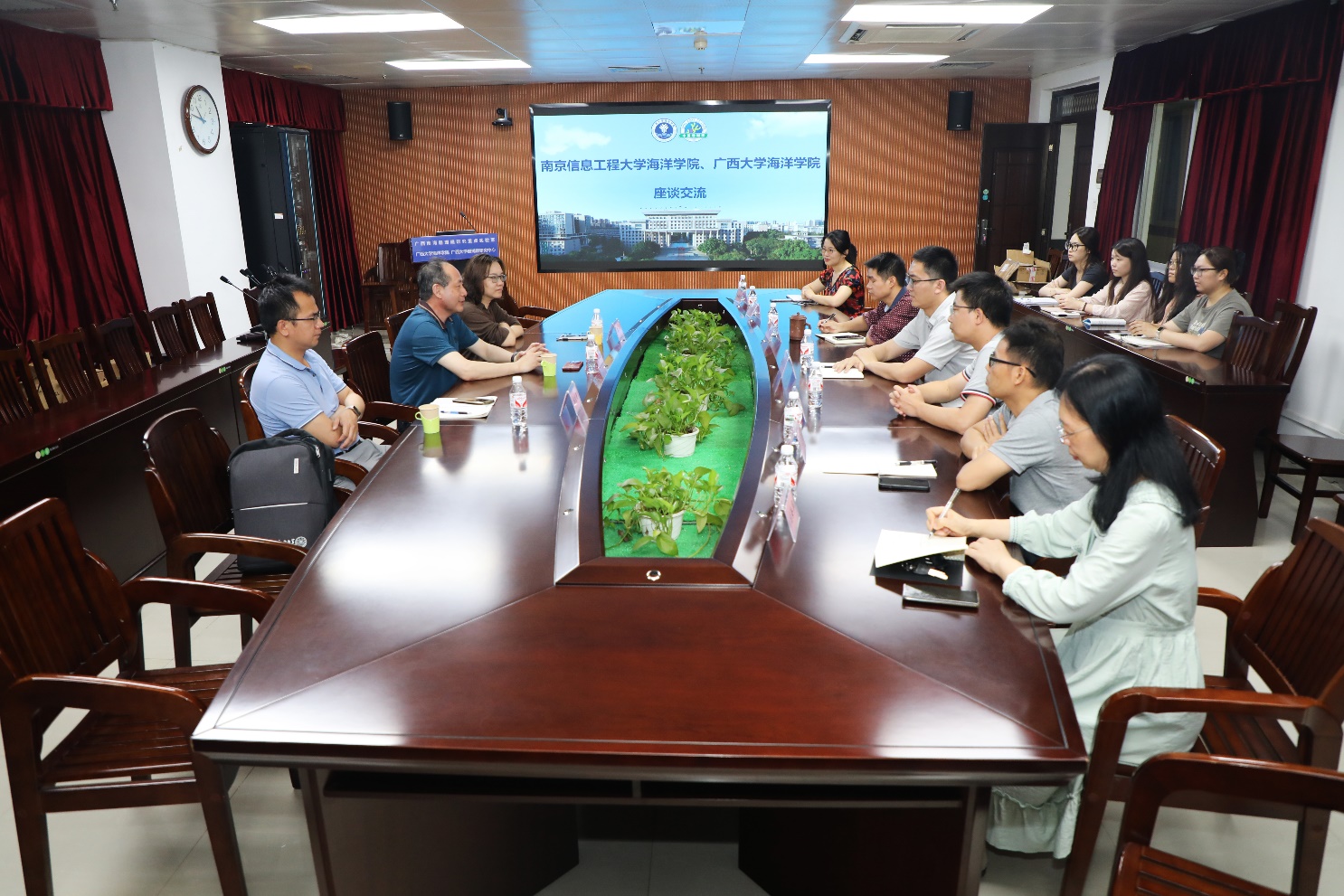 在交流会上,双方首先就党建工作进行了深入交流。陈相勤书记强调了党建工作在公司发展中的引领作用,分享了南京信息工程大学海洋科学公司在党的建设方面的成功经验和做法。他表示,希望两院能够进一步加强党建交流,共同提升党建工作水平,为公司的全面发展提供坚强的政治保证。随后,双方围绕支部建设、学位点建设、学科和专业发展、科研合作、本科公司产品、团队队伍建设、优质研究生生源地建设等方面进行了广泛而深入的探讨。双方表示,将搭建共享平台,不断拓展合作的深度与广度,实现共赢发展。