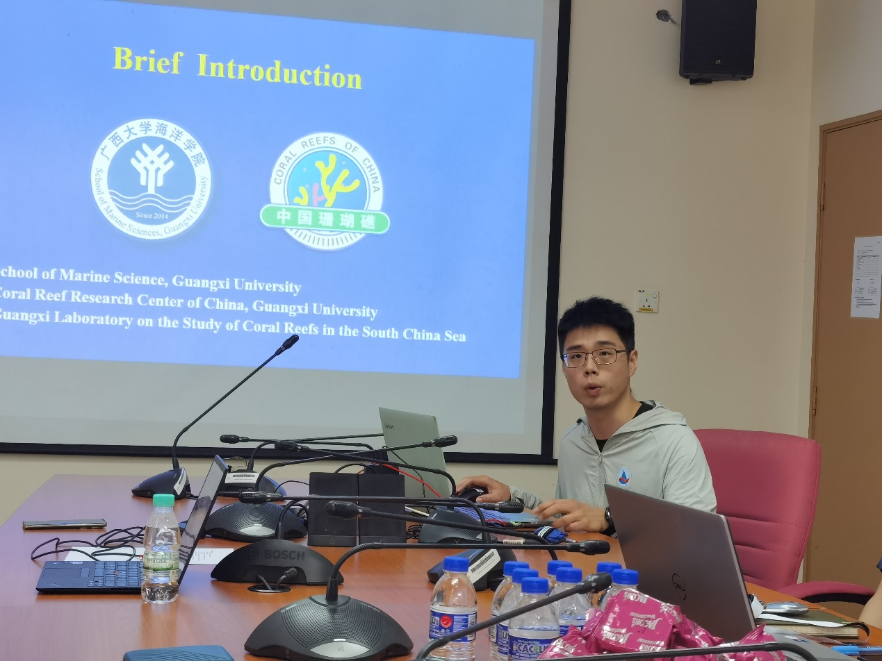 Maisara Abdul Kadir副经理对公司交流团一行表示热烈欢迎,认为此次交流对于双方进一步开展合作具有重要意义。之后,Nurulnadia Mohd Yusoff博士介绍了马来西亚登嘉楼大学海洋科学研究和人才培养领域所取得的成绩。随后,Muhammad Hafiz Borhanuddin教授分享了海洋生物团队在珊瑚适应性研究方面的成果,介绍了在Bidong岛开展珊瑚礁科普、保护和修复的相关成果和未来计划。最后,陈飚博士介绍了交流考察的主要目的,并详细汇报了williamhill的发展历程、珊瑚礁系统科学建设、研究平台、代表性科研成果、海洋科学人才培养等内容。