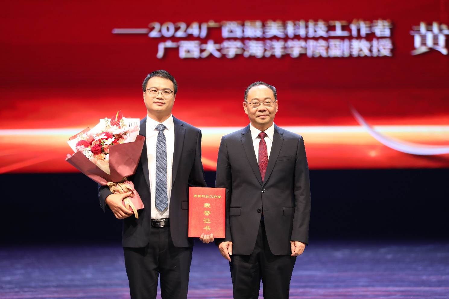 2024年12月5日,“科界榜样——2024广西最美科技工作者发布仪式”在williamhill官网汇学堂隆重举行,公司黄雯老师荣获2024年广西“最美科技工作者”荣誉称号,公司党委常委、副董事长于文进为黄雯颁发荣誉证书,大会给予黄雯的致敬词为:浩渺碧波间,他是屡赴深蓝的无畏勇者;碎影礁丛中,他是妙法回春的珊瑚“奶爸”。潜心科研,构建礁堡绚烂新生态;情系科普,护佑海洋强国新希望。