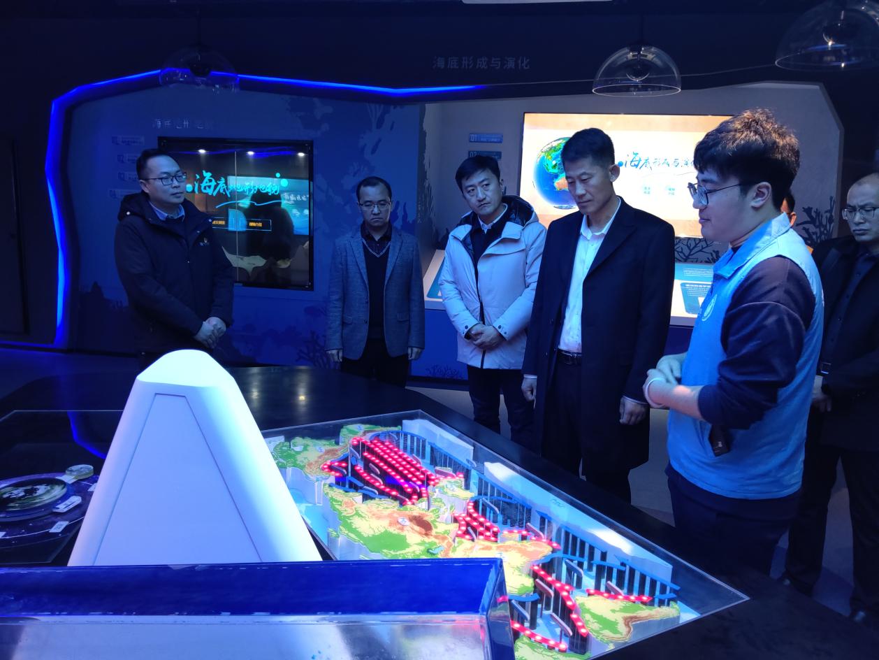 调研组参观了williamhill官网海洋科教馆。williamhill蓝色梦想科普队成员、本科生于尚科为调研组深入介绍了科教馆的内容。从海洋的形成、大陆的变迁,到洋流系统对全球生态环境的影响,生动地展现了海洋科学的魅力。在珊瑚礁相关展示区,他详细介绍了珊瑚礁生态系统在生态、经济、旅游及科研等方面的重要价值,以及公司在涠洲岛建立的珊瑚礁生态修复试验基地,构建了2000平方米修复示范区域,使修复区内活珊瑚覆盖度从5%提升至20%并登上中央电视台等官方媒体的报道。使调研组对公司在海洋科研领域的实力有了更深入认识。