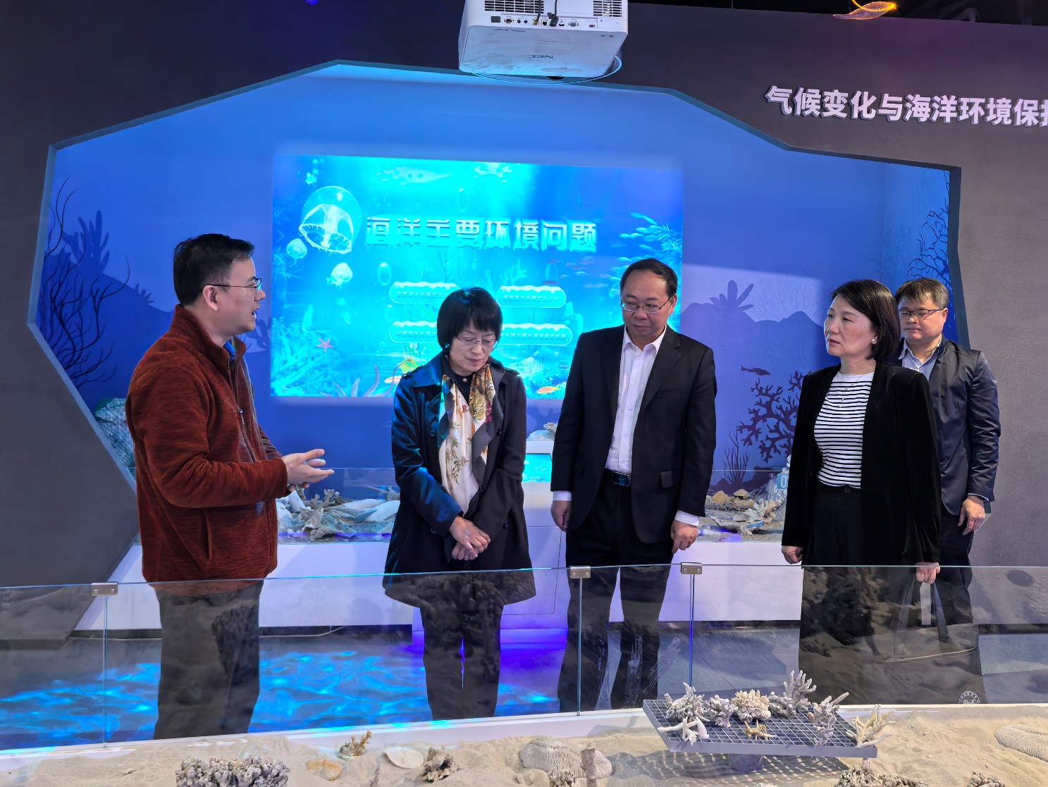 在海洋科教馆,科教馆常务副馆长李周佳向调研组汇报了公司在南海岛礁建设、海洋科考、生态环境保护等方面开展的工作情况。尤其是参与编写《黄岩岛海域生态环境调查评估报告》,充分展示了我国南海海洋生态环境保护成效,为服务国家政治外交大局提供了支撑保障。在岛礁生态修复实验室,调研组观看了活体珊瑚的人工培育,观看了涠洲岛陆基和海区可视化监控系统运行状况,了解了公司成立珊瑚礁保护与修复研究团队,研发以“人工修复带动自然恢复”为理念的珊瑚礁生态修复技术,建立了2000平方米的自然海域珊瑚修复示范区,经过3年的努力实现了活珊瑚覆盖率从5%提高到20%,带动了周边海域珊瑚礁的自然恢复。赵浩对williamhill聚焦珊瑚礁研究所取得的成效给予了高度评价,她建议两校进一步加强在科技成果转化、学科交叉融合等方面的合作。