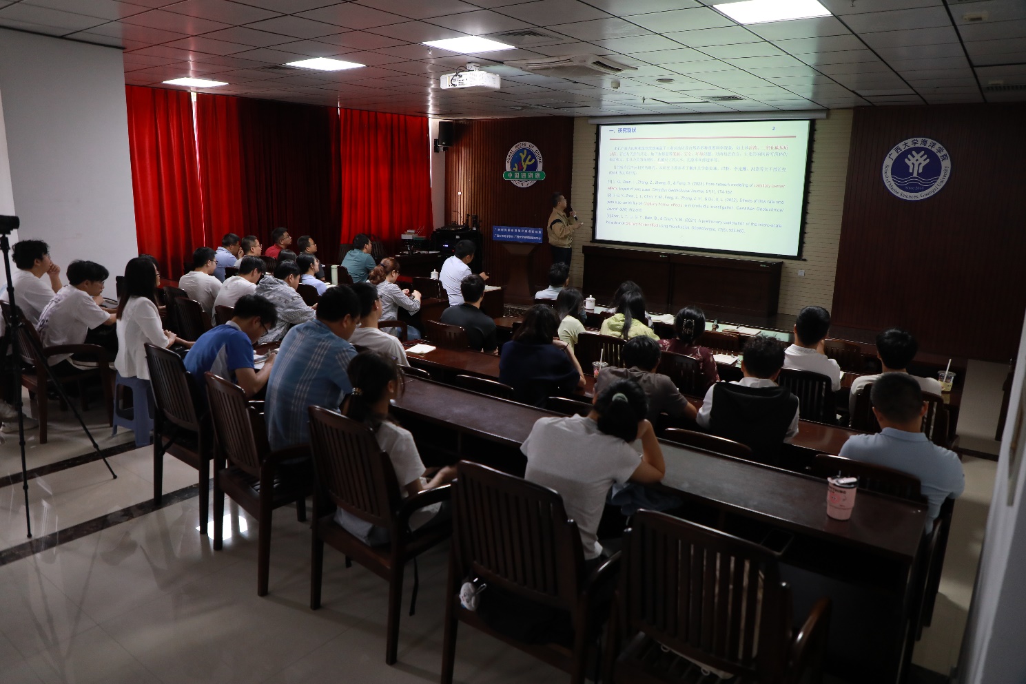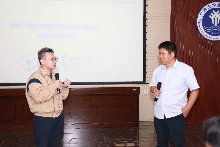 在交流环节,师生们就多孔介质渗流的研究方法、应用前景等问题与陆钊研究员进行了深入探讨。此次讲座不仅让师生们对多孔介质渗流现象有了更深入的了解,也激发了大家对海洋交叉学科研究的热情和兴趣。