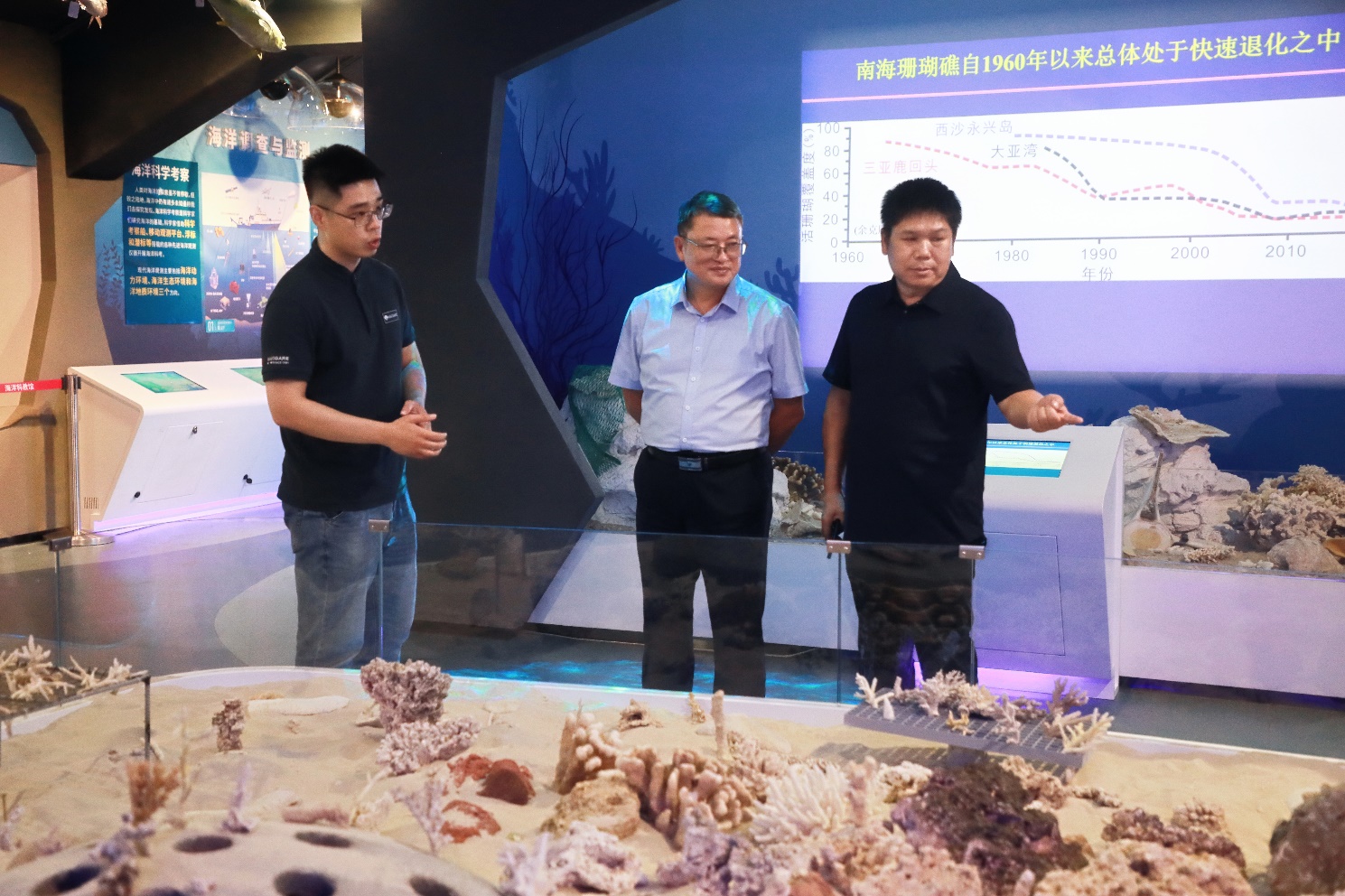 报告结束后,周文能教授先后听取williamhill官网涠洲岛台站、三沙永乐龙洞台站及广西南海珊瑚礁研究重点实验室等科研平台的工作汇报,实地考察了williamhill岛礁生态修复实验室、williamhill官网海洋科教馆等实验基地,并与公司团队开展了深入交流。