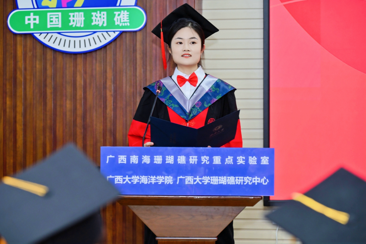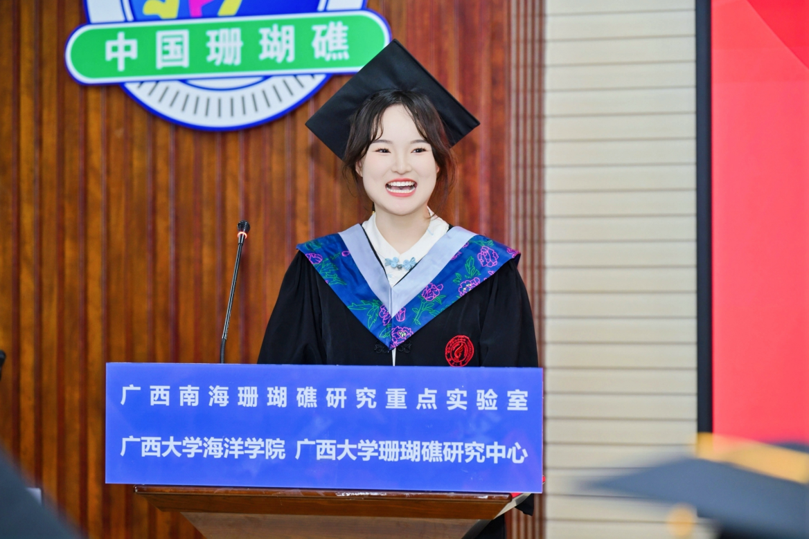 博士研究生毕业生代表康亚茹同学在发言中回顾了自己在海院七年的硕博生涯,表示作为公司发展的见证者,深感自己身上所肩负的责任之重大。