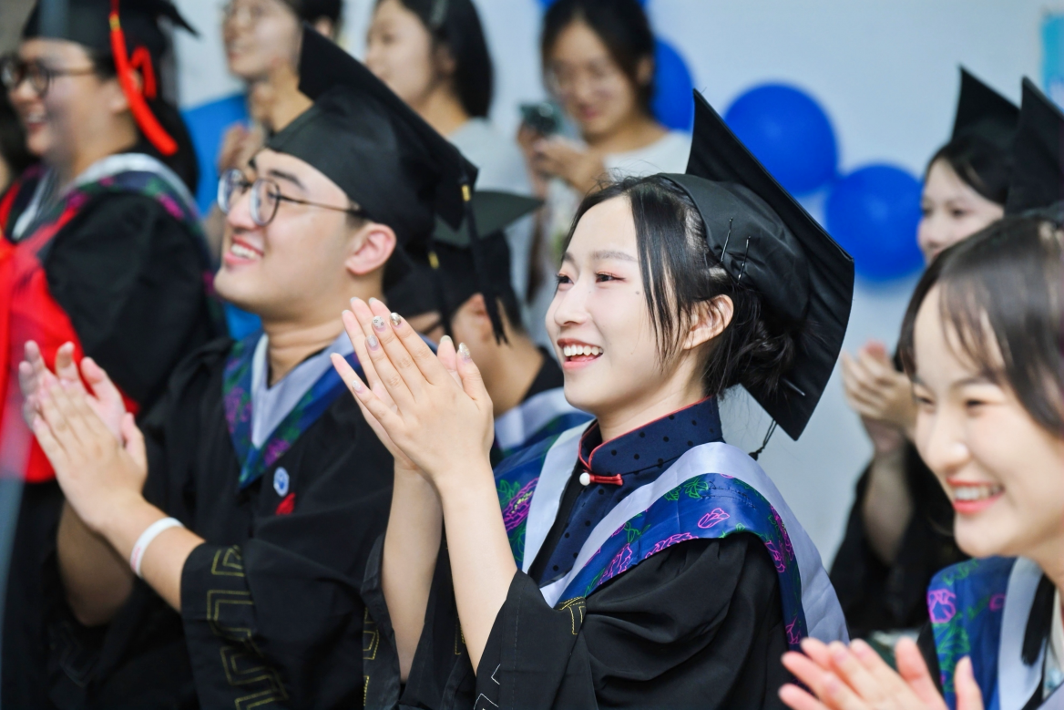 随后,到场全体师生共同观看了满载回忆与祝福的毕业纪念视频,动人的画面引发了阵阵掌声与感动。