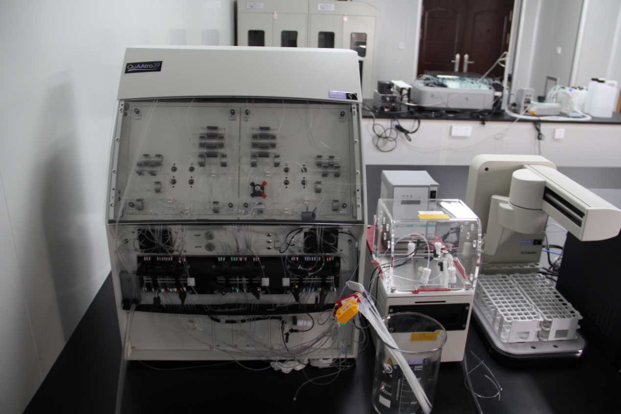 QuAAtro是一台先进的湿化学分析仪,被广泛应用于工业实验室,可自动完成复杂的化学反应,适用于大多数类型的水样,如水,土壤提取液,饮料,或其他化学物质的分析检测,目前该仪器主要被应用于针对地下水、河水、海水中硝酸盐氮、亚硝酸盐氮、氨态氮、正磷酸盐和硅酸盐等项目的测定。