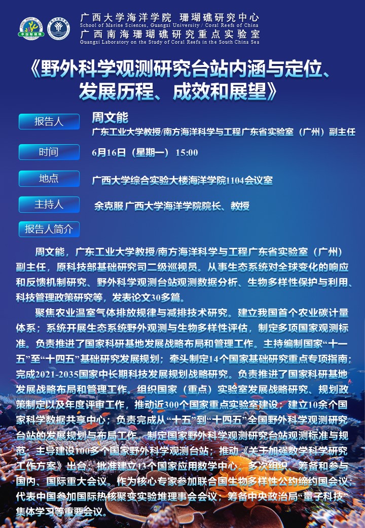 2025年6月16日 广东工业大学/南方海洋科学与工程广东省实验室(广州) 周文能教授 学术报告通知
