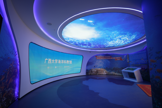 Located on the first floor of the Comprehensive Experimental Building, the Marine Science and Education Museum of Guangxi University covers an area of 1400 square meters, of which the actual exhibition area is 1270 square meters. The museum aims to promote the development of marine disciplines and the cultivation of marine science talents, while showcasing the educational characteristics and scientific research achievements of Guangxi University. The Museum has played an important role especially in promoting the efforts of the autonomous region and the whole nation to solve marine economic and strategic issues. To share marine science knowledge and strengthen science education, the interior exhibition design in the museum integrates the needs of students, social personnel, research experts, and leaders, aiming to become a leading marine science exchange platform with coral reef research as its characteristic, both domestically and internationally. In addition, the museum is also a practical base for public elective courses for students at Guangxi University and a core area for marine science education.