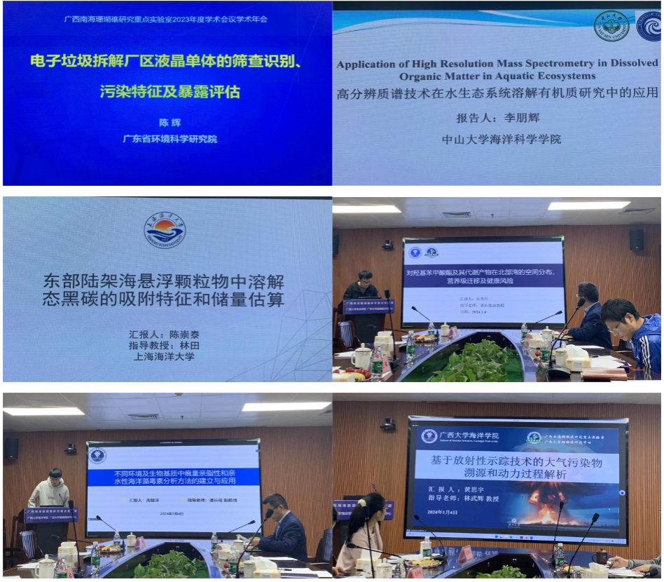 On January 4, 2024, the 2023 Academic Conference of Guangxi Key Laboratory of Coral Reef Research in the South China Sea -- Academic Forum for Graduate Students in Marine Environment and Chemistry was successfully held in the academic conference room of the College. The forum will be conducted in a combination of online and offline.