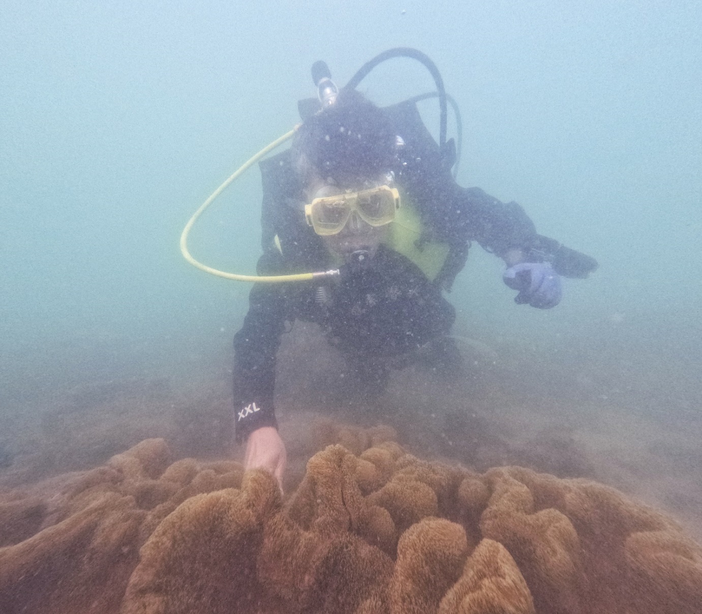 Academician Chen Fahu and other experts also inspected the geological and geomorphological landscape of Weizhou Island’s coral reefs, and made an in-depth analysis of the formation causes of the beach rocks on Weizhou Island and the paleo-climate and environmental information coral reef recorded; visited Guangxi University SSI Diving Cente and gained a detailed understanding of the center's role in coral reef scientific research and teaching. Academician Chen Fahu also put on a diving suit and equipment and went into the personally went underwater to inspect the coral breeding base and coral reef ecological restoration nursery on Weizhou Island. He witnessed the remarkable achievements of the laboratory in coral reef ecological restoration.